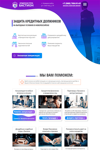 Сайт, выполненный в градиентном стиле с функцией "Мультилендинг" позволяет максимально точно отображать запросы посетителей.