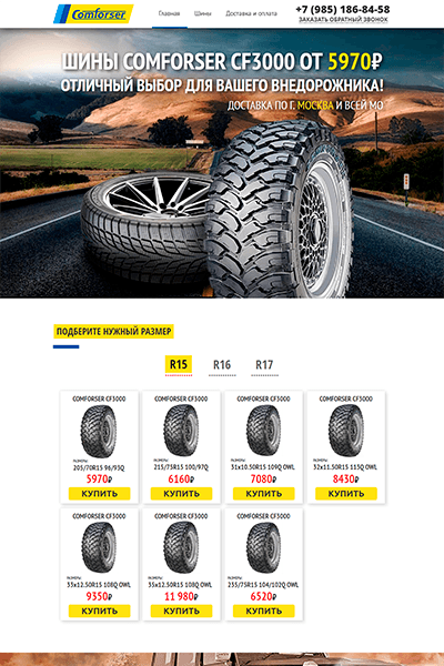 Стояла задача сделать Landing для продажи шин. Его результаты оказались в 2,5 раза (!) выше, чем у интернет-магазина клиента.