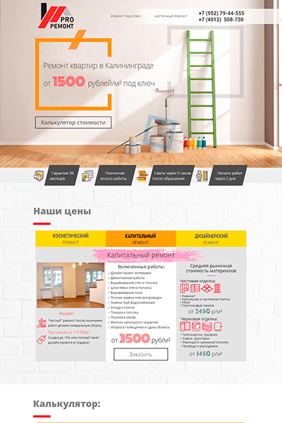 Многостраничный Landing Page по ремонту квартир в Калининграде