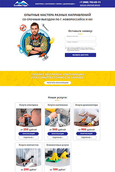 Сайт сервиса мастеров различных направлений - Все Мастера